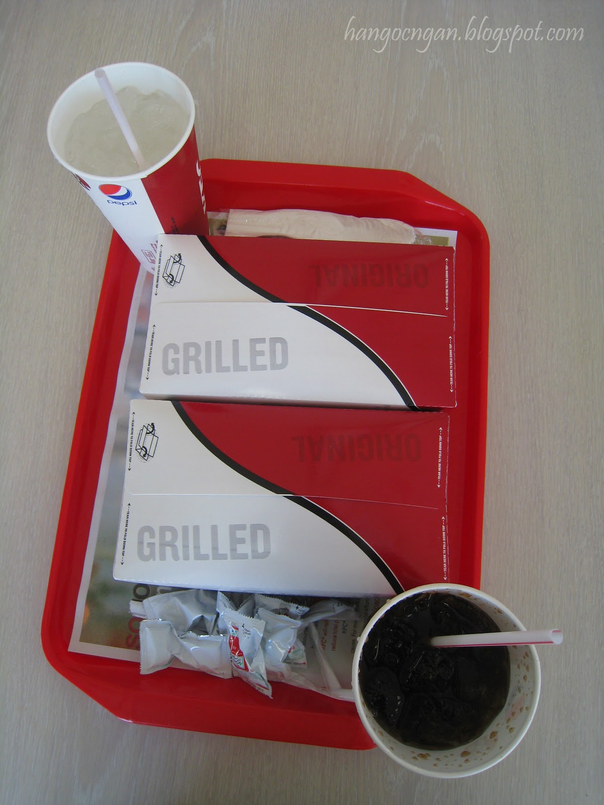 Trưa nay mấy bạn kia đi downtown Greenville, mình với Nhi đi rồi nên quyết định về nhà với thằng Igor, rồi hai đứa đi ăn KFC^^. Hôm bữa cũng ăn thử Mc Donald, Burger King với Arby rồi, nhưng thấy không hợp khẩu vị lắm, nên nghĩ KFC chuyên về gà, nên chắc cũng không khác ở VN mấy. Mà hôm nọ nghe anh Long (ảnh mới đi New York về) nói KFC ở đây ăn không ngon, thua xa bên Trung Quốc (do nó làm theo khẩu vị khác), nên thấy cũng hơi ngao ngán. Vậy mà không ngờ hôm nay ăn thử thấy cũng ngon ghê, tuy vị không đậm đà như ở VN.