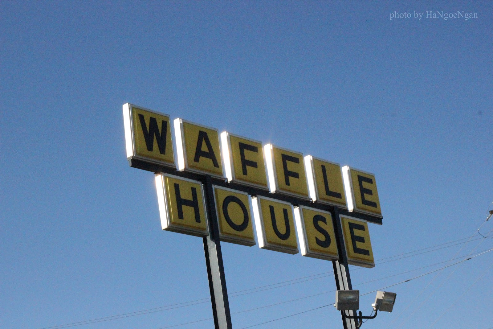 Chiều về mình với Thanh có ghé qua Waffle House ăn thử, thấy đồ ăn cũng rẻ mà ngon ghê. Mà chủ yếu là xem phim Mỹ thấy người ta hay vào đây ăn, nên muốn thử một lần cho biết (giống như thử Hitch hiking đó)