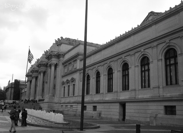 Thật ra bọn mình đi không hết Central Park, chỉ vì đi lạc hướng để tìm cái Alice in Wonderland. Hỏi mấy người luôn, vậy mà cuối cùng cũng lạc. Đi lòng vòng một hồi vòng ra ngoài luôn. Chạy qua thăm cái Metropolitan Museum sát bên. Dự định sẽ quay lại Central park một lần nữa, nhưng rất tiếc thời gian không  cho phép. Metropolitan Museum là bảo tàng về nghệ thuật, độ hoành tráng bên ngoài và trang trí, kiến trúc bên trong thì khỏi phải nói. Ai đến cũng phải ngỡ ngàng vì vẻ đẹp của nó. Có điều (đáng tiếc là ở NY cái gì cũng phải tốn phí) giá để vào được bên trong là hơn 20usd (mình không nhớ lắm), với cái giá này thì mình chịu thôi, thế là chỉ đi lòng vòng ngoài sảnh, xem mấy bức tượng ngoài đó, ngắm kiến trúc của tòa nhà, rồi rẽ vào khu vực bán đồ lưu niệm, mua được một cây viết chì làm kỷ niệm và cuốn Song of Brooklyn. Mình rất thích cuốn này nhé, về VN sẽ dành thời gian để ngồi đọc. Đến chiều tối hai đứa đi xe buýt đến Times Square để ăn Pizza (có để địa chỉ chỗ này ở bài trước rồi nhé). Buồn cười lắm, lúc đầu cũng không biết là đến Times Square rồi đâu, chỉ biết nhìn chỗ này sao đẹp quá, nhà cao cao, đèn rồi bảng quảng cáo chớp chớp, hoa hết cả mắt. Đến lúc hỏi người ta mới biết đang đứng ở Times Square. Mọi người ai đến rồi hay xem tv chắc cũng đã biết chỗ này nhộn nhịp đến mức nào rồi hen, nào là quay phim, chụp hình, khách du lịch, dân NY, đông đến nỗi không có chỗ để đi. Ở đoạn đường này có mấy người vẽ tranh, và bọn mình đã rất sai lầm khi bỏ 15usd cho cái chú người Tàu vẽ. Ôi, chẳng giống gì cả, có đúng một khuôn mặt, chú thêm kiếng, xén bớt tóc, thế là thành mình. Nhìn tranh xong mà thất vọng ghê gớm. Tự nhiên mất 15usd. Nhưng mà vẫn giữ để làm kỷ niệm, để thấy đã làm điều gì ngốc nghếch ở NY.