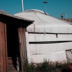 một nửa đường đi từ Ulan Bator tới Gobi trời mưa âm u, trên đường thấy ngôi nà nằm ở lưng chừng như này thấy ghê quá, như nhà ma vậy đó